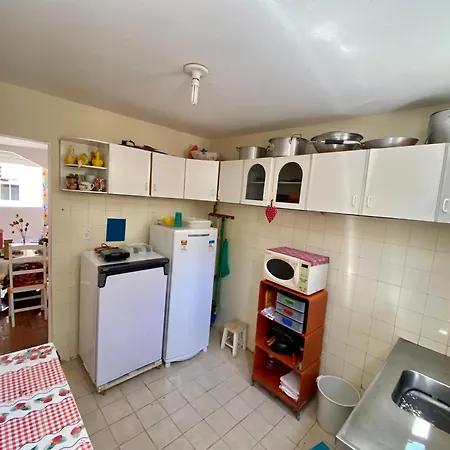 Apartamento Ap da Tia Fê no paraíso da Praia de Morro Branco inclui comodidades de auto-atendimento, tais como cozinha equipada com refrigerador, forno e utensílios de cozinha.